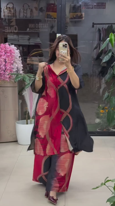 | Catalog Type | Two-Piece Co-ord Set (Asymmetrical Kurta with Palazzo Pants) |